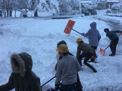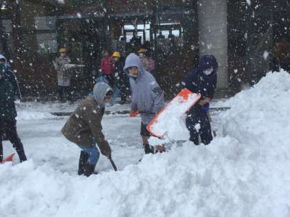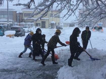 登校してきた子供から、玄関前の除雪に取り組んでいます。