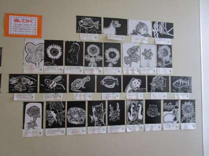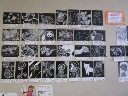 黒い画面に下絵をかき、消しゴムで消して作品を仕上げていきました。「消しゴムで消すので、手が痛くなった」「だんだん作品ができてうれしかった」と子供たちの声が聞かれました。どの作品も力作揃いです。