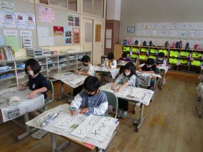 1年生 書き初め練習の様子 公開日 2020/12/21 更新日 2020/12/21 1年生 1年生は「さくら」という字を書きます。お手本をよく見て、ゆっくり丁寧に書くことを心がけて練習しました。冬休み中、ご家庭でもじっくりと練習に取り組んでいただきたいと思います。