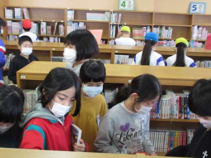4年生 冬休み用の図書を選ぼう 公開日 2020/12/21 更新日 2020/12/21 4年生 冬休みは、学校図書館の本を一人3冊まで借りることができます。シリーズ物を選んだり、普段よりも厚いページの本を読んだりと、書架にある本を興味深く見て、自分の本を選んでいました。