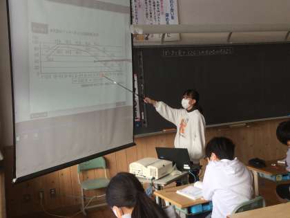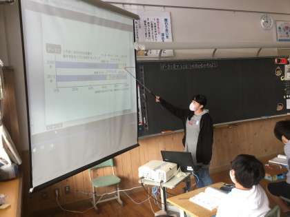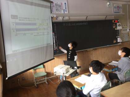 算数の学習では、資料から情報を読み取り、どんなことが分かるか紹介し合いました。