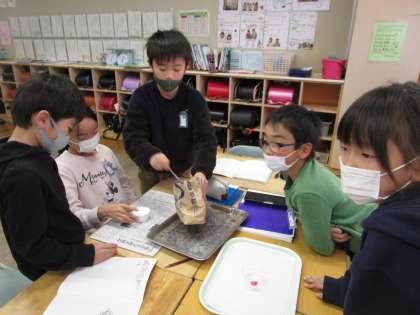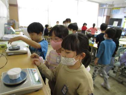 3年生 同じ体積の物の重さは? 公開日 2020/12/22 更新日 2020/12/22 3年生 砂糖と塩の体積を同じにして、重さを比べました。 「同じじゃない?」「塩が重そう!」「砂糖がきっと重いよ」 予想をしてから、実験を行いました。 「えっ、こんなに重さが違う!」 「見た目はあまり変わらないのに、重さが違うなんてびっくり」 砂糖よりも塩が重い結果となり、物によって重さが違うことに子供たちは驚いていました。
