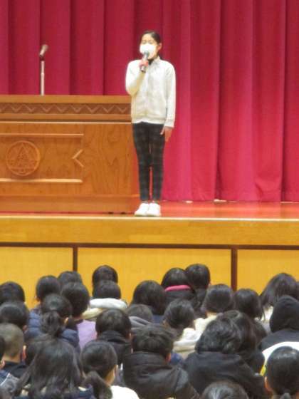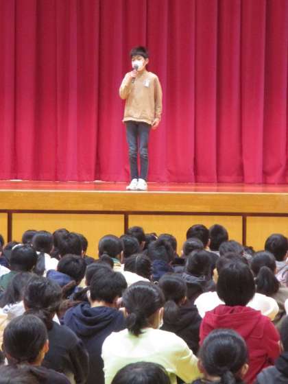 2学期 終業式 〜あらしの「ら」〜 公開日 2020/12/24 更新日 2020/12/24 学校 2学期、おばあちゃんに漢字ドリルを買ってもらったというある杉の子の話を聞きました。きれいな字で取り組み、おばあちゃんに感謝の気持ちを表しているようでした。楽に話した何気ない会話から、杉の子のよさを感じた場面でした。 (校長先生のお話より)