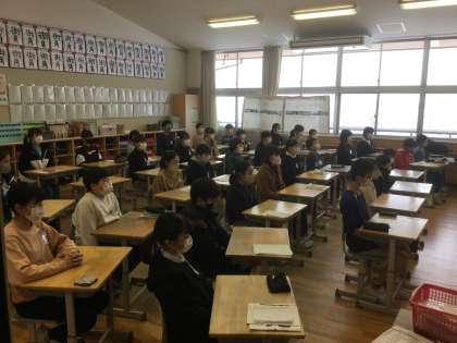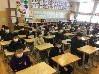 3学期の始業式は、各教室で自分の席に座ったまま行いました。子供たちは落ち着いた雰囲気で、式に臨んでいました。