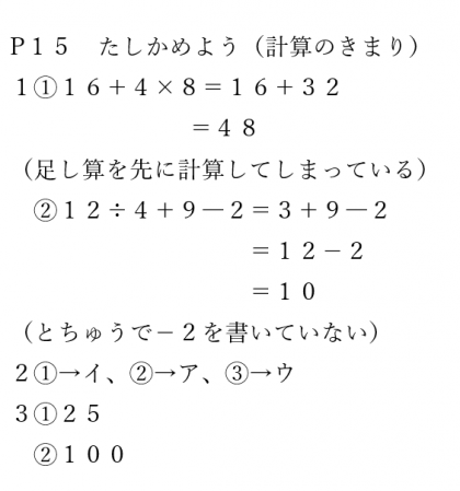 休校中に取り組むPUノート課題の答えです。(算数P15)