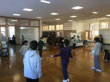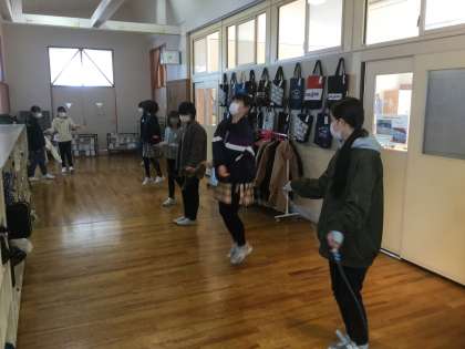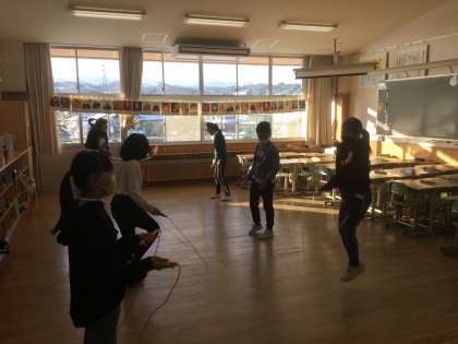体育館が使えない日は、校内で短縄の練習に励んでいます。