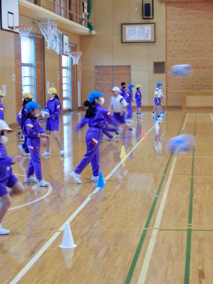 今日は、チームを変えてドッジボールラリーの練習をしました。