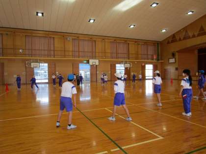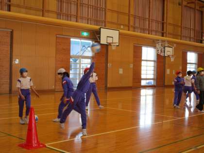 体育の時間にドッジボールラリーの練習をしました。