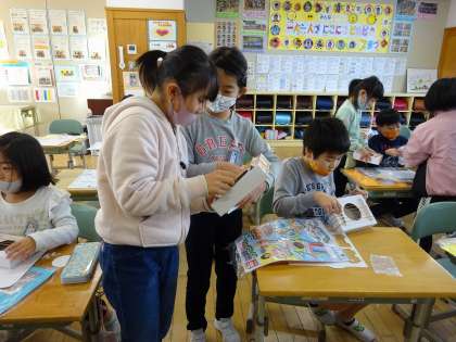 図工で「ときめきコンサート」の学習を始めました。輪ゴムを使って、音がなる楽器を作っています!