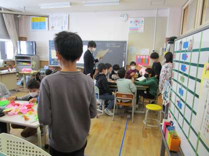 いよいよ、卒業を祝う会に向けて、5年生のプロジェクトがスタートしました。「卒業掲示」「卒業を祝う会」「卒業を祝う週間」の3つのプロジェクトに分かれて、企画や計画を行います。
