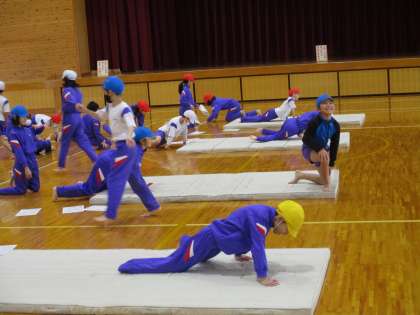 3年生 マット運動に挑戦 公開日 2021/01/28 更新日 2021/01/28 3年生 体育では、マット運動を行いました。クマ歩きやシャクトリムシ、ゆりかごなど、柔軟に技に取り組めるよう基本の動きを練習しました。もっと難しい技にも挑戦したいですね。
