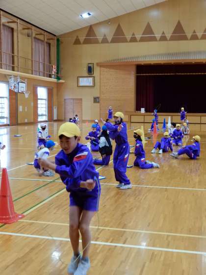 子供たちは、なわとびランキングとドッジボールラリーに夢中に取り組んでいます。