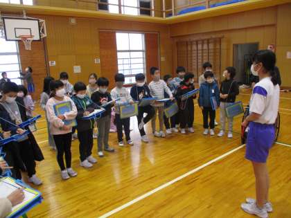 各クラブのクラブ長から、それぞれのクラブの活動やよさを聞き、3年生たちは真剣にメモを取っていました。