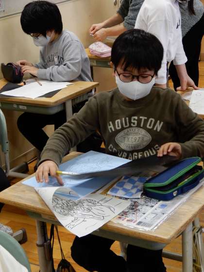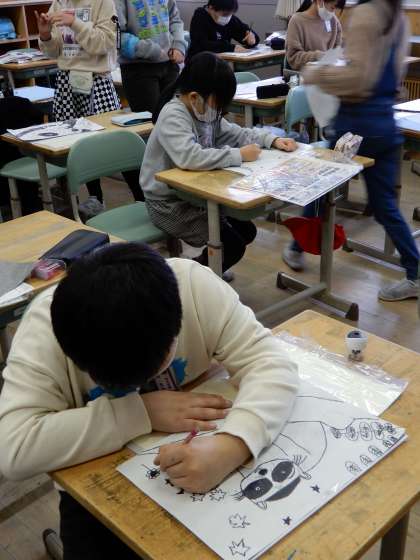 今日は、下絵を板に写しました。次は、いよいよ彫りです。