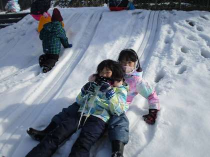雪上で運動した後は、自由時間で雪遊びをしました。 そり、雪合戦、サッカー等、思い思いの活動を楽しみました。