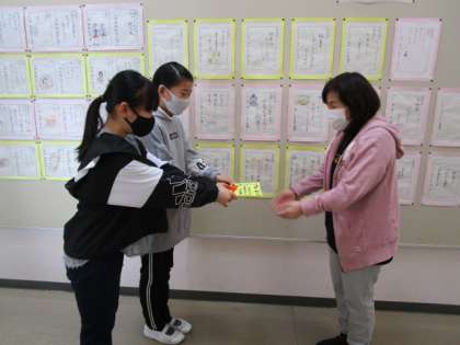 給食委員会 給食週間の取組 公開日 2021/02/09 更新日 2021/02/09 委員会活動 給食週間の取組として、食べキリン運動を行ったり、杉の子が考えた給食カルタや標語を紹介したりしています。今日は、6年生が書いた手紙を調理員の方へ届けました。今後も、美味しい給食を作ってくださる方々に感謝の気持ちを忘れず、味わっていただきたいと思います。