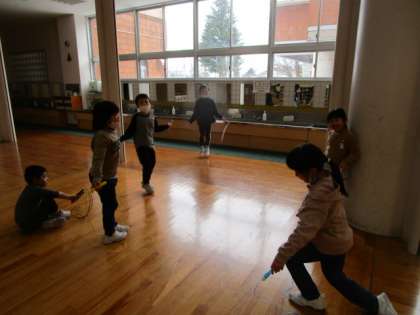 今日は、縄跳びを練習する子供たちがたくさんいました。金曜の記録会に向けて、個人の技を高めようと頑張っています。