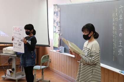 6年生の主張の様子をご覧ください。