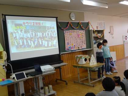 2年生 学習発表会1 公開日 2021/02/14 更新日 2021/02/14 2年生 本日は、ご多用の中、学習参観にお越しいただきありがとうございました。子どもたちは、練習の成果を発揮し、堂々と発表することができました。 2年生も残り26日となりました。3年生に向かって、生活面・学習面の目標を立て、進んでいきたいと思います。引き続き、学年・学級活動にご協力の程、よろしくお願いします。