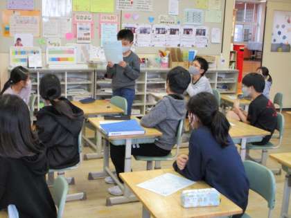 3学期の振り返りを行いました。振り返りにプラスして、5年生は、委員会の経験を通して6年生に繋げたいことを。6年生は、中学生になったら生かしたいことも一緒に発表しました。主体的に取り組んできたことを、生かしたいという人が多かったです。