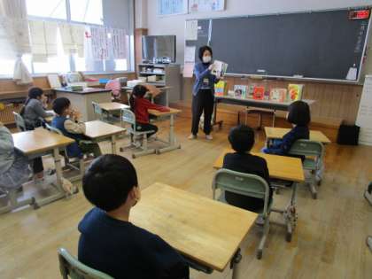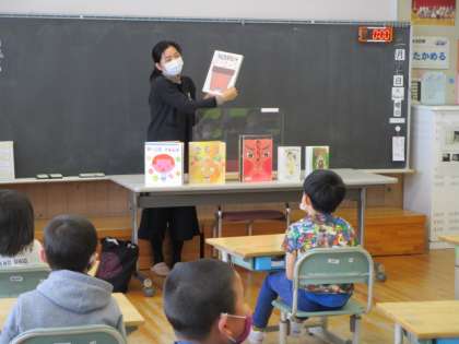 1年生 ほんの森 学校訪問 公開日 2021/02/18 更新日 2021/02/18 1年生 今日は、ほんの森の職員の方が、学校を訪問してくださいました。 松組は、「感じる・気持ち」に関する本、竹組は、今年の干支の「うし」に関する本を紹介していただきました。子供たちは、さっそく「続きを読みたい!」「本を借りに行きたいな」などとつぶやいていました。読書手帳もいただいたので、ご家庭でも是非、読書に親しんでみてください。