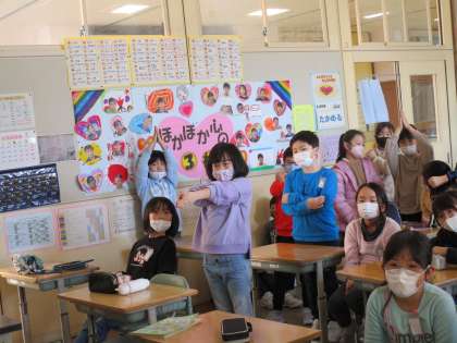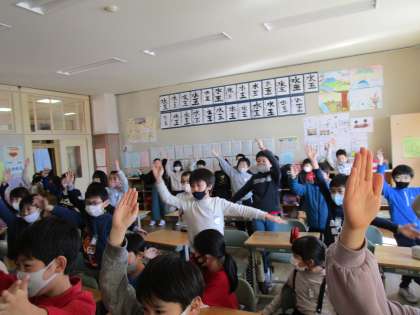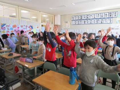 3年生 最後の全校集会を楽しんだよ 公開日 2021/02/22 更新日 2021/02/22 3年生 最後の全校集会を行いました。集会委員さんが考えてくれた楽しいゲームに、子供たちは夢中になりながら取り組みました。集会の後には、「楽しかった」と笑顔がっぱいでした。