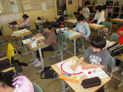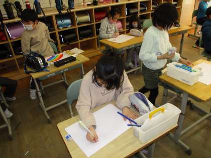 3年生 卒業を祝う会の掲示作り 公開日 2021/02/22 更新日 2021/02/22 3年生 卒業を祝う会の時にかざる絵を描きました。6年生の学級目標から「虹」をテーマにし、心を込めて描き上げました。
