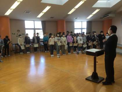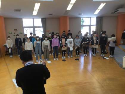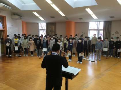 卒業式に向けて、合唱練習が始まりました。高音部・低音部ともに、音を確かめながら歌っています。