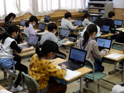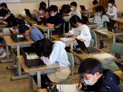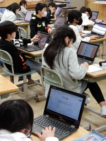 一人一台端末が入ったことで、調べ学習の幅も広がりました。写真は、社会科の学習の様子です。