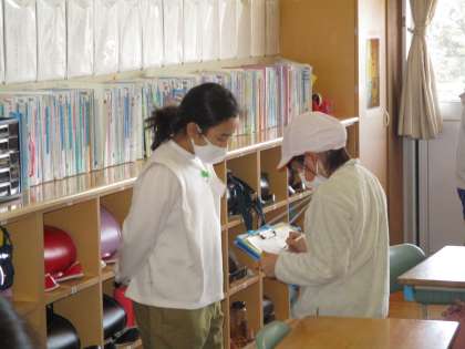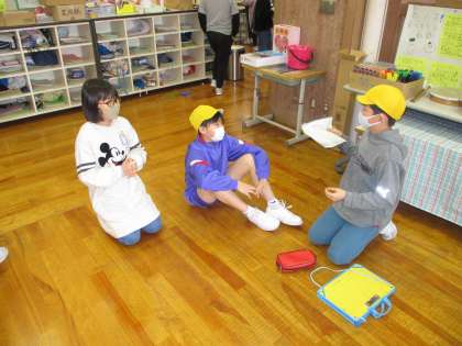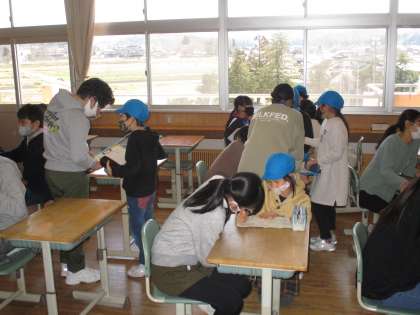 卒業を祝う会で行う「クイズ」を考えるため、ファミリーの6年生に「好きな食べ物」や「6年間で一番心に残ったこと」等、インタビューを行いました。楽しいクイズでみんなが盛り上がれるように、聞きたいことをしっかり質問しました。