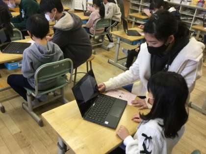 1年生が1人1台PCを使い始めるので、うまく扱えるように手伝いに行きました。