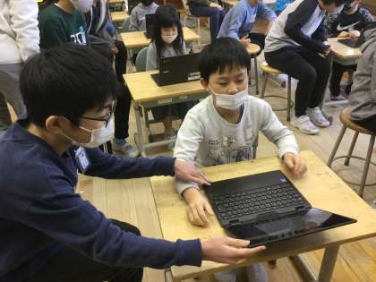 1年生が1人1台PCを使い始めるので、うまく扱えるように手伝いに行きました。