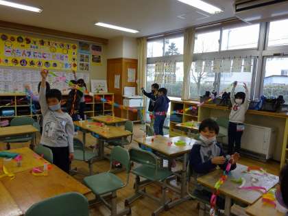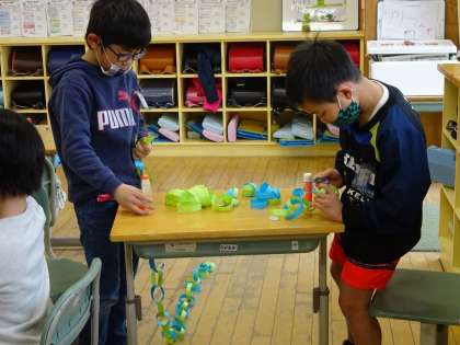 2年生 卒業を祝う会準備 公開日 2021/02/26 更新日 2021/02/26 2年生 来週の卒業を祝う会に向けて、輪飾り作りをしました。同じファミリー教室の友達と協力して、素敵な飾りを完成させました!