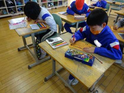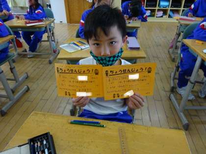2年生 卒業を祝う会に向けて 公開日 2021/03/01 更新日 2021/03/01 2年生 3日(水)の卒業を祝う会に向けて、6年生さんに挑戦状を書きました。にらめっこ・あっちむいてほい・フラフープから自分の得意なものを選んで対決します!対決が楽しみです!