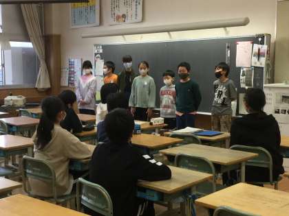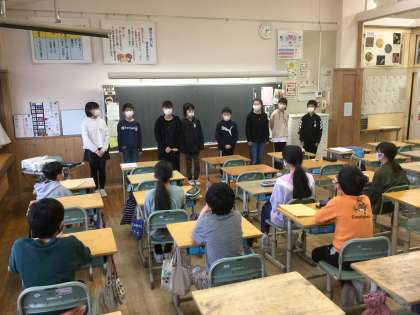 6年生と5年生のメンバーが、それぞれ1年間の活動を振り返り、話をしました。また、「これまで6年生がつないできたバトンを、来年度はみんなが引き継いでいってください」などと、6年生から5年生にメッセージを送っていました。