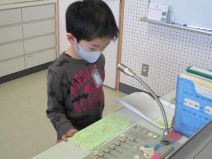卒業を祝う週間の取り組みで、今日は1年生の代表2名が6年生へのメッセージを放送しました。気持ちを込めて、メッセージを伝えることができました。