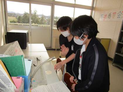 環境美化委員会 4年生放送 公開日 2021/03/03 更新日 2021/03/03 委員会活動 環境美化委員会では、ファミリー清掃の始まりと終わりの時間を知らせる放送をしています。 来年、高学年の仲間入りをする4年生さんに、放送をしてもらいました。はっきりと分かりやすい放送です。来年の活躍が楽しみです。