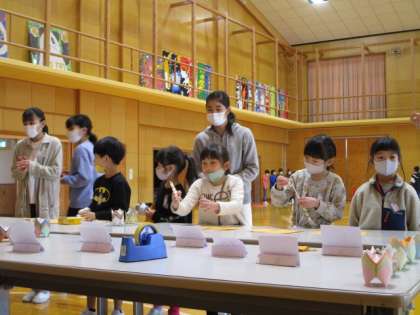 のびのびタイムに、6年生さんが招待してくれた縁日で遊びました。楽しい遊びがいっぱいあって、子供たちは大喜びでした。