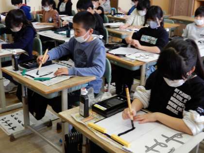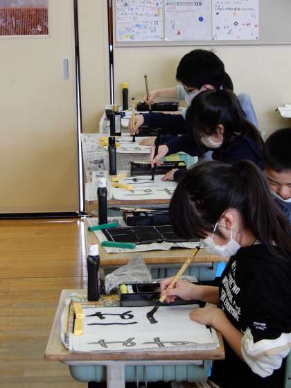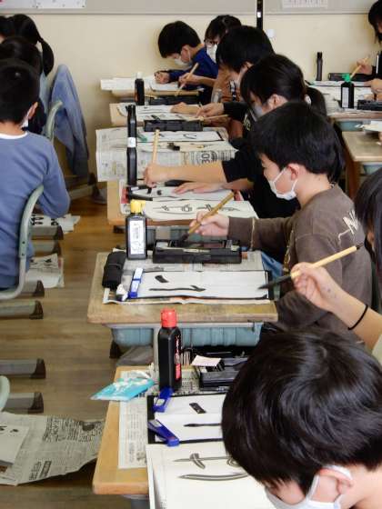 「結び」の学習をしました。筆遣いがなかな難しかったようですが、お手本をよく見ながら書きました。