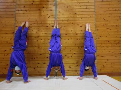 3年生 壁倒立に挑戦 公開日 2021/03/05 更新日 2021/03/05 3年生 体育では、マット運動で連続して技を行う発表を行いました。発表の後は、壁倒立に挑戦しました。全身に力を込め、まっすぐに技ができるよう練習しています。