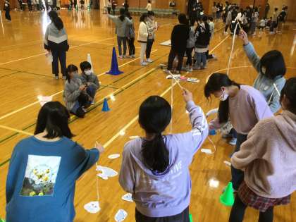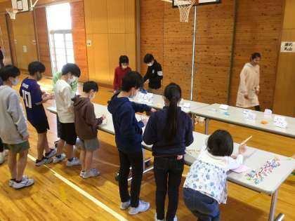 「下級生に虹を架けよう」。下級生グループの発案で始まった出し物も、今日の5年生との交流で最後となりました。コロナウイルス感染症の影響で、1年間を通してあまり関わることができなかった下級生に、楽しんでもらえるように準備を進めてきました。どの学年の子供たちとも、笑顔で交流することができ、うれしそうでした。
