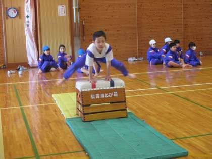 今日は、跳び箱 3段に挑戦しました。「踏み切り」を意識して、足をしっかりと広げて跳ぶことができました。