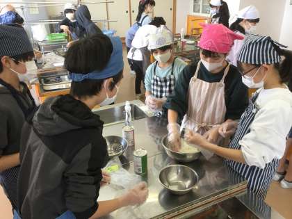 グループに分かれて、白玉粉を使っておやつ作りをしました。