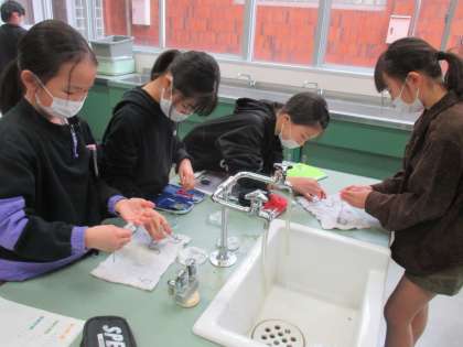 教科書に載っている実験、インターネットで見た実験等いろいろな実験に取り組んでいました。