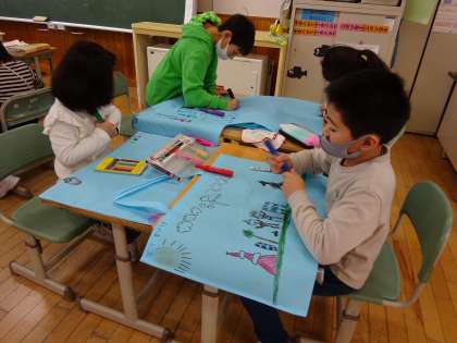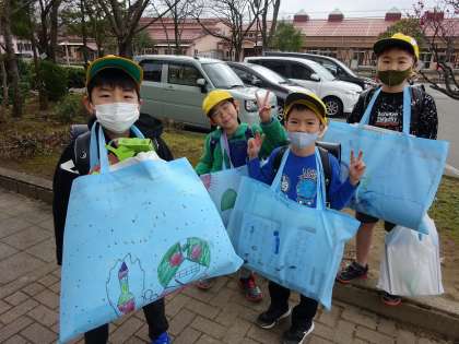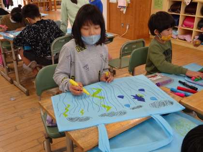 オリジナルの作品バックを作りました。2年生で作成した図工作品を入れて持ち帰りましたので、是非ご覧ください。