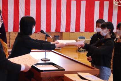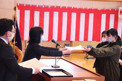 6年間、休むことなく学校に通い続けた4名の子供たちに皆勤賞が授与されました。