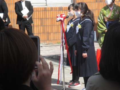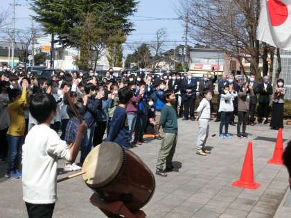 歓送式 公開日 2021/03/19 更新日 2021/03/19 6年生 卒業生は最後の挨拶をし、杉原地域と杉原小学校の明るい未来を願って万歳しました。5年生は、6年生へ感謝の気持ちとエールを伝えました。