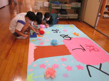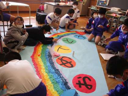 卒業掲示に向けて、子供たちがアイディアを出し合い、作りあげてきた掲示が完成に近づいてきました。