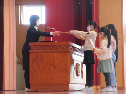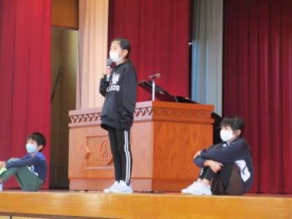 学年代表の2人が、あゆみの受け取りと作文発表を行いました。