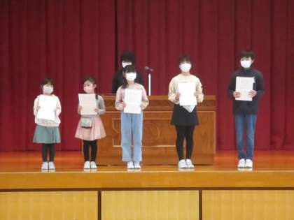 修了式が行われました。各学年の代表が修了証を受け取ったり、1年間がんばったことを発表したりしました。